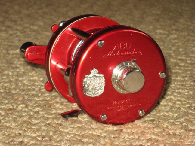 Pictured below, is a rare version of Record Ambassadeur 5000A. Not serialized yet, this example has gray arbor/red flanges and a red anodized star drag.
