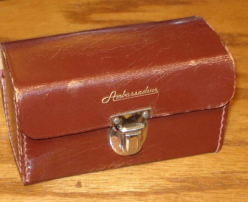 Pictured below is a Record Ambassadeur 5000 with an extremely rare plain brown cardboard box stamped with the matching serial number. This is a complete package with unmarked Record case with chrome buckle. Courtesy of Dan Parker. S/N 63485