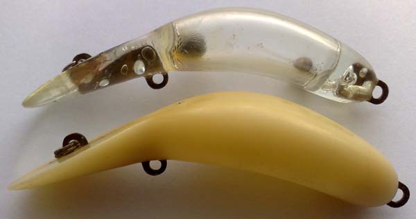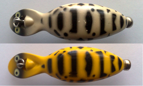 Tadpolly lures in metallic colors, particularly the early ones, often have damage to the finish, making excellent examples somewhat hard to find. |