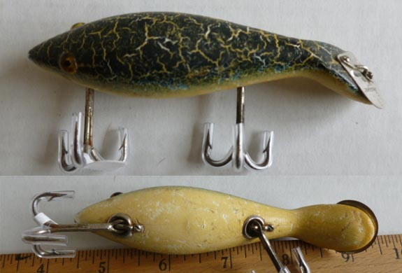 Wood Tad Polly in Fancy Green Back, aka, Green Crackleback, Heddon series #6000