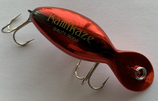 Towards the end of the Heddon years, in fact 1982 to 1984, two variants on the Tadpolly body were manufactured. One had the addition of a clear, bright red plastic tail between the rear hook and the body, presumably borrowed from the Firetail Sonic lure. This gave us the Jointed Tadpolly (9015), which was available in only a very restricted number of colours.