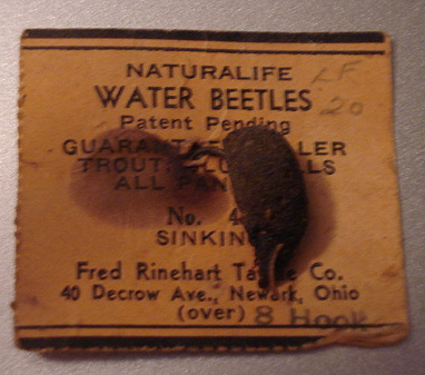 UPDATE: Though mainly known for the line of Jinx lures, the company also apparently produced fly rod lures such as the Water Beetle pictured above. Another such fly rod lure, the "Naturalife May Fly" is pictured on a similiar card stock in the book "Old fly rod Lures" (2nd Edition) by John and Jim Muma. (Special thanks to collector Donna Tonelli for providing the Water Beetle picture!)